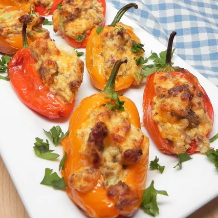 Air Fryer Mini Peppers Stuffed with Cheese & Sausage