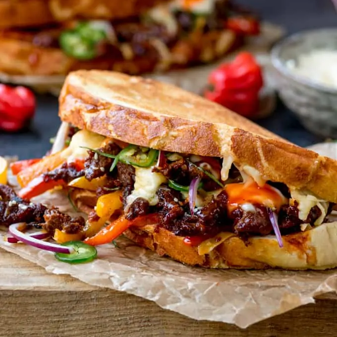 A very tasty steak & cheese sandwich with a hint of the orient.