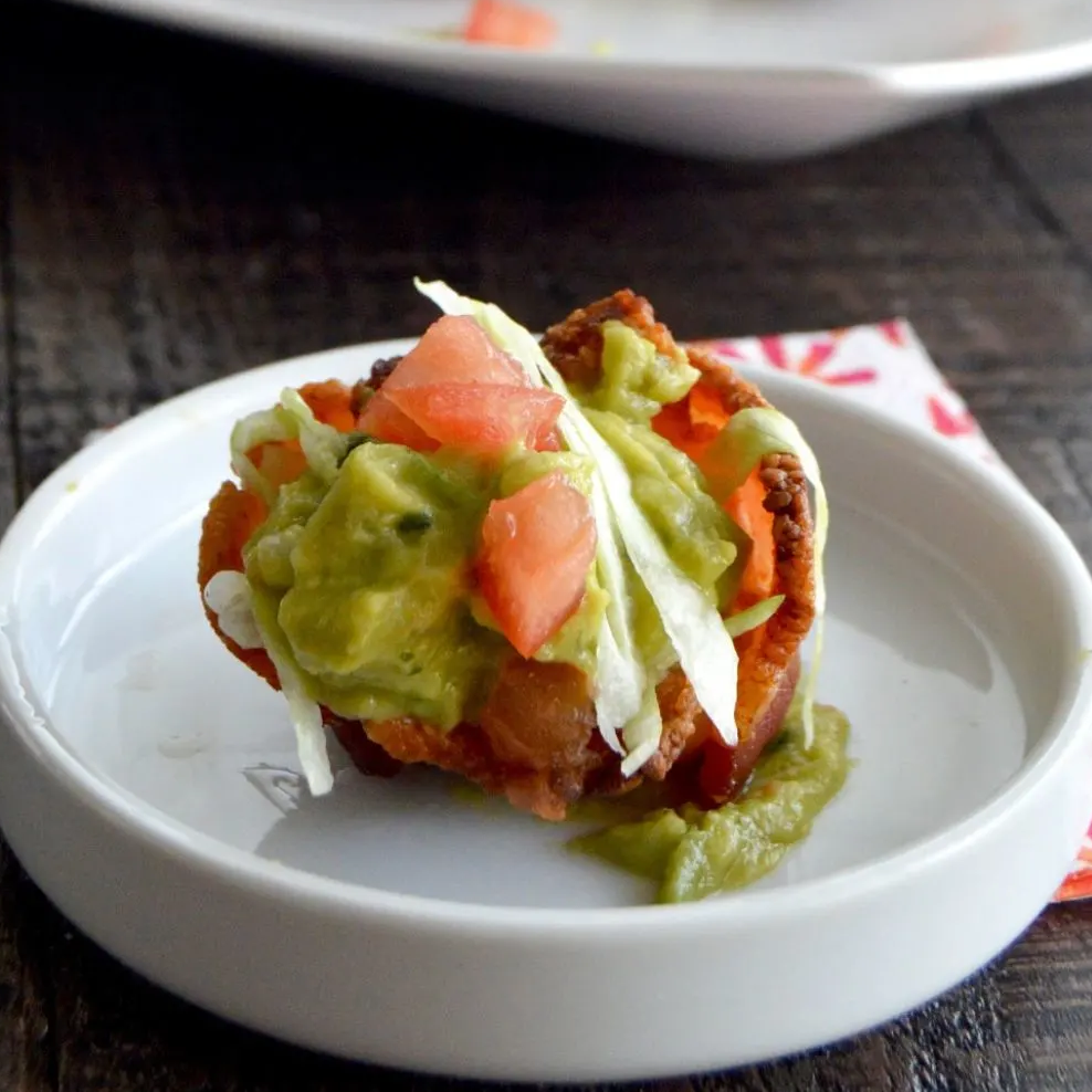 When bacon cups are cool, divide guacamole between them. Garnish with coriander leaves.