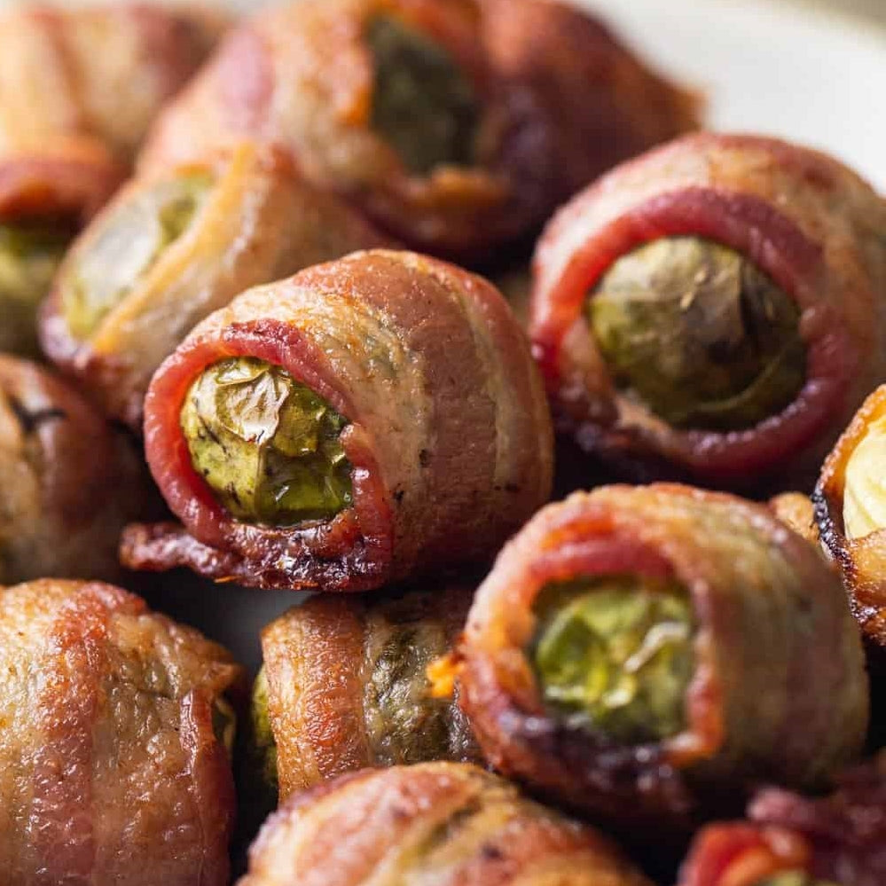 Beautifully wrapped Brussel Sprouts in strips of bacon then brushed with a maple, brown sugar glaze and baked until golden brown. This is one MUST make appetizer this holiday season!