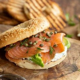 To serve, cut the bagels in half and fill with smoked salmon and cream cheese.