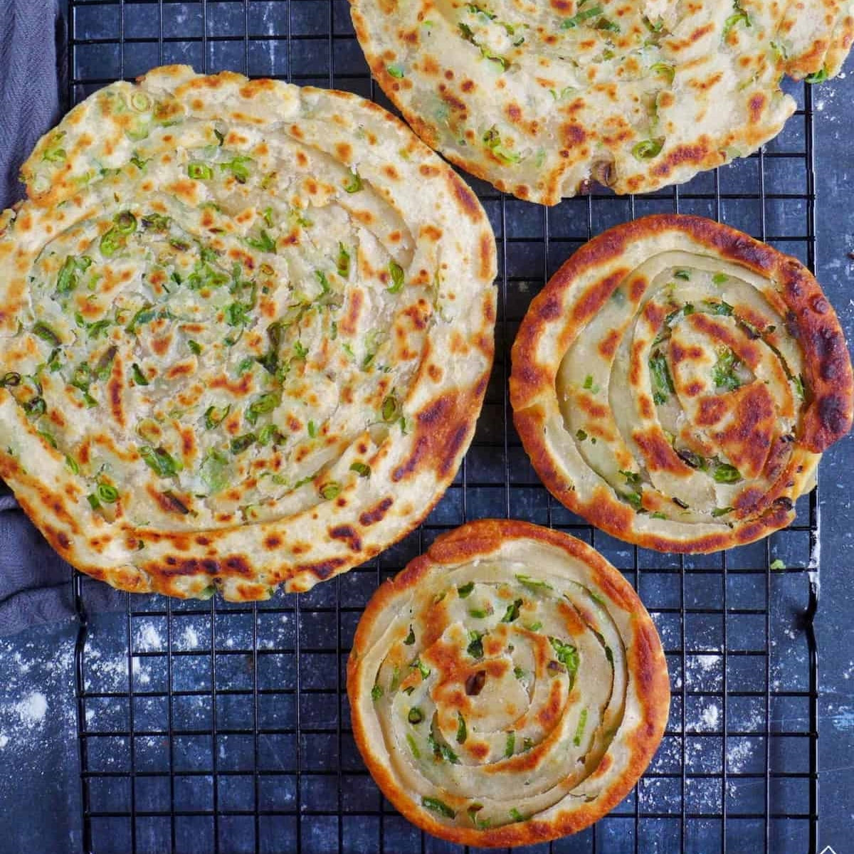 Place the dough on a floured board. Divide it into 6 equal balls. Gather the dough into round balls. Let the dough rest for about 10 minutes. Flatten each piece of dough with your palm and roll into a thin rectangular shape. Brush the surface with sesame oil, sprinkle some SIDS SALT & PEPPER, spring onions and green chillies. Starting with the edge closest (the long end) to you and roll up the dough. Then roll it up again from one end like a snail, tuck the end and let it rest for another 10 minutes. Repeat with the remaining dough.