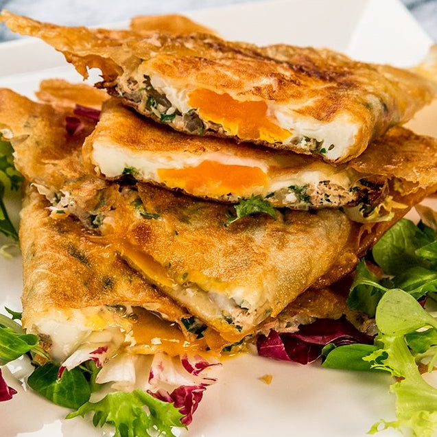 Pronounced 'breek', a triangle shaped fried appetizer famous throughout the Middle East.
