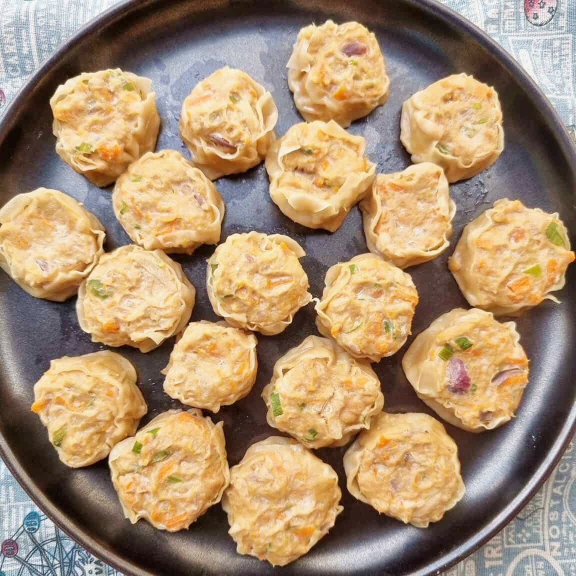 This is a variation of pork Siomai or shaomai and makes use of lean ground chicken plus additional vegetables and seasonings.