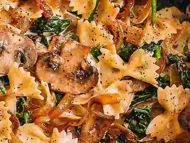 Farfalle With Spinach Mushrooms Caramelized Onions