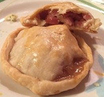 On a lightly floured surface, roll pastry out to 3 mm thickness. Cut into 15 cm rounds. Place approximately ½ cup filling on one half of each. Fold the pastry over the filling and crimp edges to seal. Brush lightly with beaten egg white and cut three slits in the top to allow steam to escape. Place on baking tray.