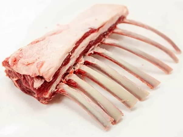 Step-by-step photo tutorial on how to French cut a rack of lamb roast.