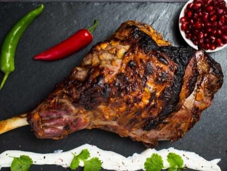 The leg of lamb is marinated in a medley of spices in a yoghurt base. By marinating the lamb, the meat will retain more moisture during the cooking process. Serve with sweet potato fries.