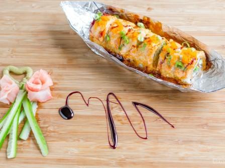 A favourite "cooked" sushi presenting the Lion King sushi roll, or also knows the baked salmon Bell Block roll. Enjoy this recipe with home made delicious mouth-watering sushi.