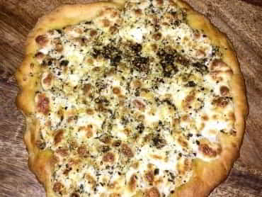 Manakish is topped with zaatar which is a mixture of thyme, oregano, sesame seeds and sumac. Taste is amplified when you mix zaatar with cheese.