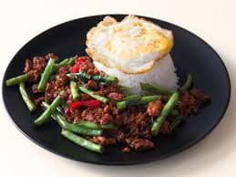 Phat kaphrao may have been first introduced to Thailand during the reign of King Rama VII when Chinese immigrants carried the spices to be sold in the Thailand market. Eventually, stir-fried basil likely gained popularity around 1957, having been adapted from Chinese cuisine. To prepare this dish, black soybean was stir-fried with garlic, followed by minced meat or chicken. It is seasoned with fish sauce and dark soy sauce, and, according to general belief, it is thought to be an adaptation of stir-fried beef with cumin leaves.
