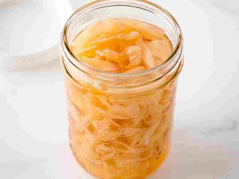 Remove from the heat and let cool slightly. (so it doesn't break the glass jar) Pour the hot vinegar mixture into the jar with ginger slices. Using a clean chopsticks, or any utensil, mix well together. Close the lid, let cool completely, and refrigerate.