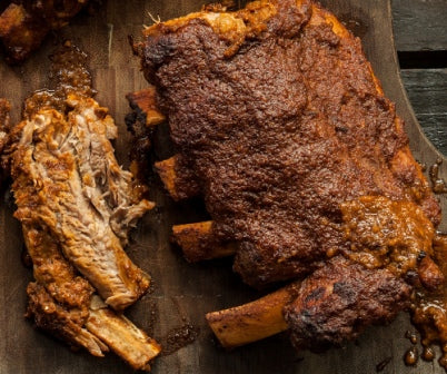 To make the barbecue sauce, cook the bacon in a frypan until it starts to brown, about 10 minutes. Add the onion and garlic and cook until the onions have softened, about 10 more minutes. Add the dry ingredients mixture and stir to evenly combine. Add the bourbon and stir all of the ingredients together, deglazing the pan. Add the bacon-vegetable mixture, coffee, SIDS SMOKEY GARLIC SAUCE, Tuimato sauce and soy sauce to a blender and blend until smooth. Place the sauce and ribs in an airtight container and place in the refrigerator to marinate overnight.