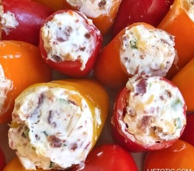 Use a small spoon or mini spatula to stuff the mini capsicums with the mixture.