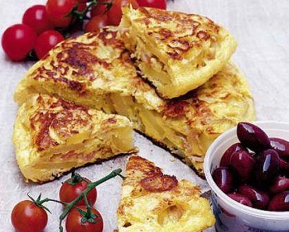 Invert the tortilla on to a plate and return the pan to the heat with a bit more of the reserved oil. Slide the tortilla back into the pan, uncooked side down and cook for 5 minutes until set all through. Pack for a picnic or serve in wedges with salad and bread for an easy supper.