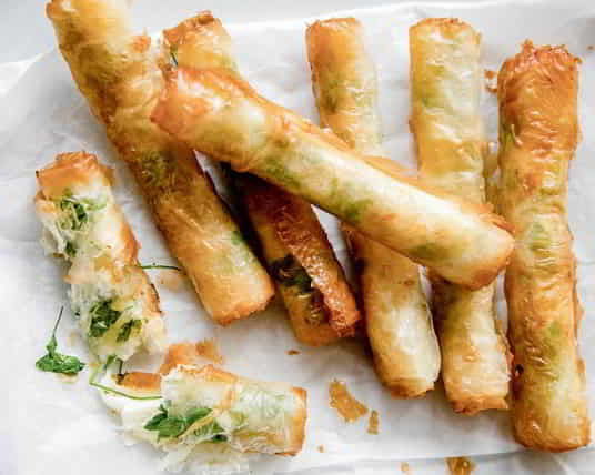 These Turkish cigars, knows rakakat, are a popular middle Eastern mezze made with phyllo pastry and two types of cheese. They're incredibly delish and will impress the pants off your guests.