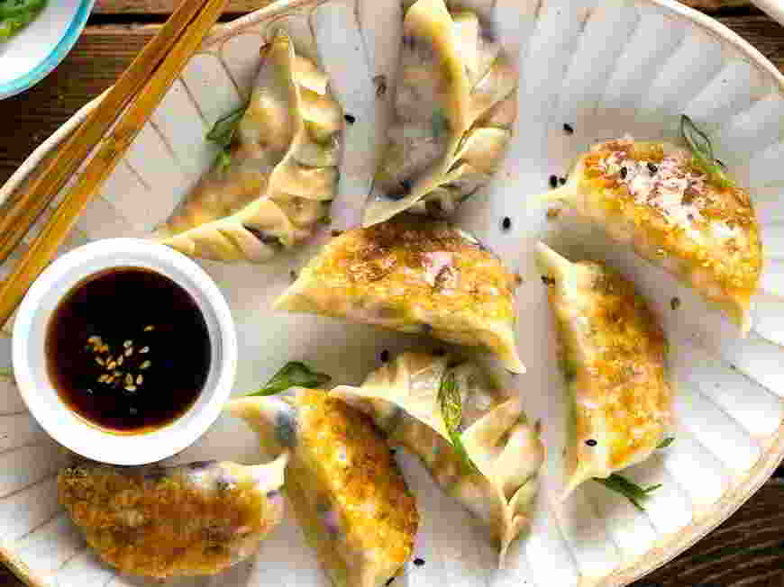Stuffed with a delicious mix of tofu, cabbage, carrots, and shiitake mushrooms. With golden crisp bottoms, fresh juicy filling, you don't have to be vegetarian or vegan to enjoy these Japanese pan-fried dumplings.