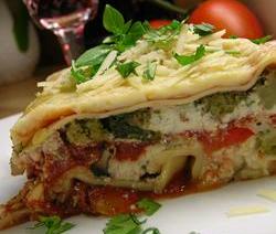 History: Lasagne originated in Italy, traditionally ascribed to the city of Naples, where the first modern recipe was created and published in Liber de Coquina (the book of cookery) and became a traditional dish. Traditional lasagne is made by interleaving layers of pasta with layers of sauce, made with ragù, bechamel and Parmigiano-Reggiano. In other regions and outside of Italy it is common to find lasagne made with ricotta or mozzarella cheese, tomato sauce, various meats, (e.g., ground beef, pork or chicken) miscellaneous vegetables (e.g., spinach, zucchini, mushrooms) and typically flavoured with wine, garlic, onion and oregano. In all cases the lasagne are oven-baked. Traditionally, pasta dough prepared in Southern Italy used semolina and water and in the northern regions, where semolina was not available, flour and eggs. Today in Italy, since the only type of wheat allowed for commercially sold pasta is durum wheat, commercial lasagne are made of semolina. (from durum wheat)