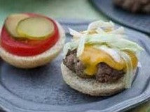 Form mini-patties making them about 4 cm in diameter. Heat your largest frying pan to medium-high until it almost reaches the smoking point. Put a tablespoon of oil in, swirl the oil to coat the pan and put venison patties in to sear. Cook until you reach a dark crust on both sides. Put seared sliders on a sheet pan. Finish searing the remaining sliders. At this point, you can cover the pan full of sliders and refrigerate the patties to cook later or freeze.