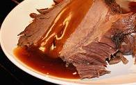 Pour drippings through strainer into medium sized bowl, return juices to slow cooker and discard material in strainer. In a small bowl, combine water and cornflour until smooth then stir into cooking juices until well combined. Cover and cook on HIGH until thickened, about 15 minutes. Slice meat and serve with gravy.