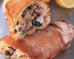 Don't be afraid of this unusual sandwich stuffing. Chopped mussels, clams, surimi and squid are incredible spooned into a baguette with a spritz of lemon and mayo.