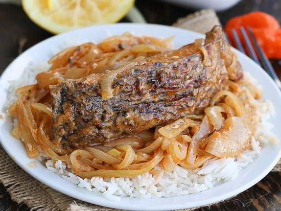 A Senegalese seasoned fish smothered in lemon, garlic and mustard sauce - grilled or fried.